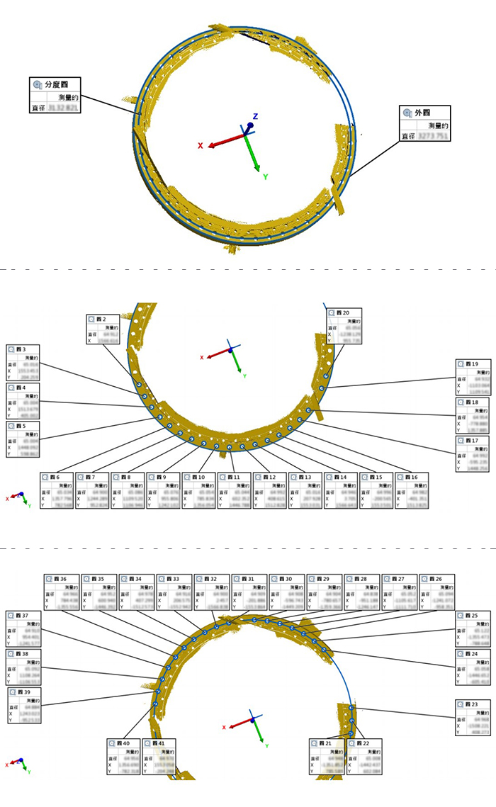 客户为西南某制造企业,有一圆柱形工件(直径3m),因已使用一定年限而有所磨损,客户需要采集该工件数据,获取外径、所有孔位尺寸及小孔分度圆等关键尺寸,判断偏差是否在容差范围内,同时用于安装在该工件上的配套工件的逆向设计。