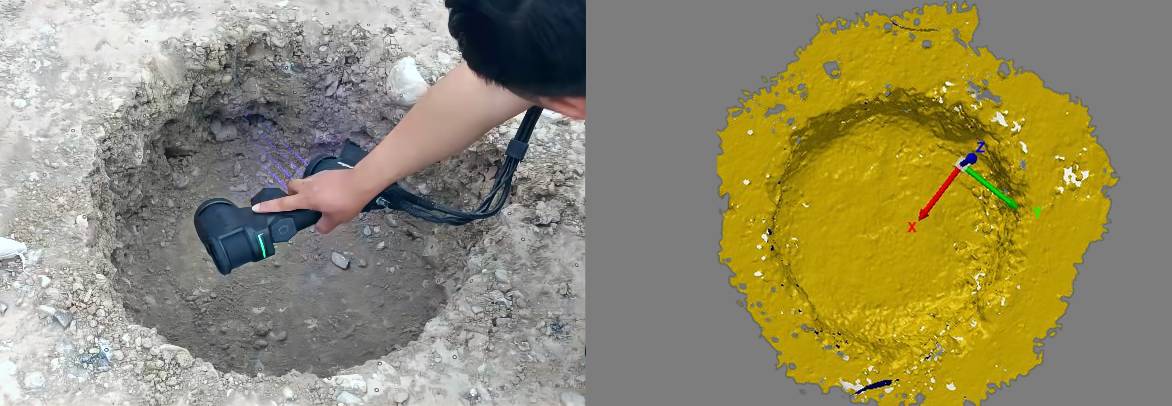 ◎使用MarvelScan扫描在机场地基上挖出的土坑,以高达135万次测量/秒的速率,可以一次性精准、迅速完成不规则土坑的三维数据采集,且数据方便传输与保存,具有永久可追溯性;