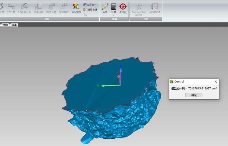 ◎将扫描数据导入Geomagic Control软件提取土坑体积,继而可以计算土的密度。