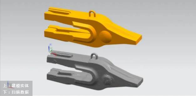客户主要经营矿山机械的开发和生产,现在需要对现有老旧矿山挖斗进行更新优化和创新。矿山挖斗本身较大,长度约3米,主要扫描区域为挖斗前装配挖齿的部分,最后将挖斗主体与配件挖齿装配,进行开模加工。